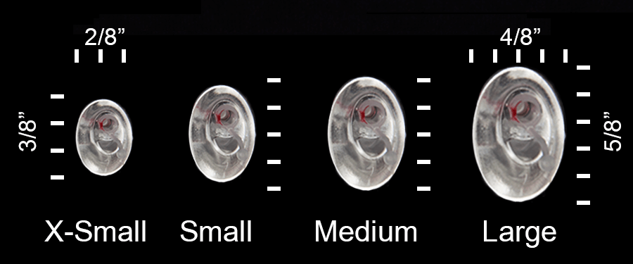 Drag the respective oval sizing shapes over the ear canal and match the best size.